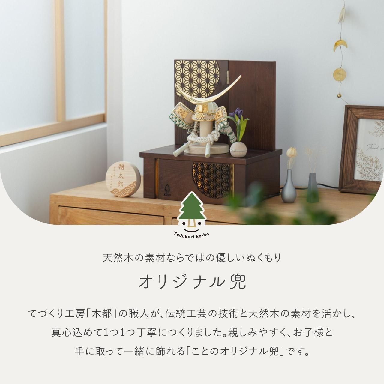 親しみやすく、お子様と一緒に飾れることのオリジナル兜です。