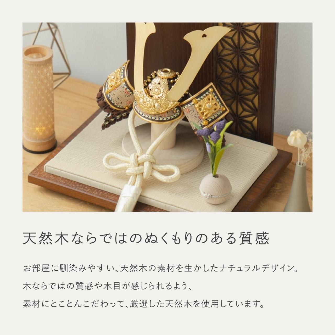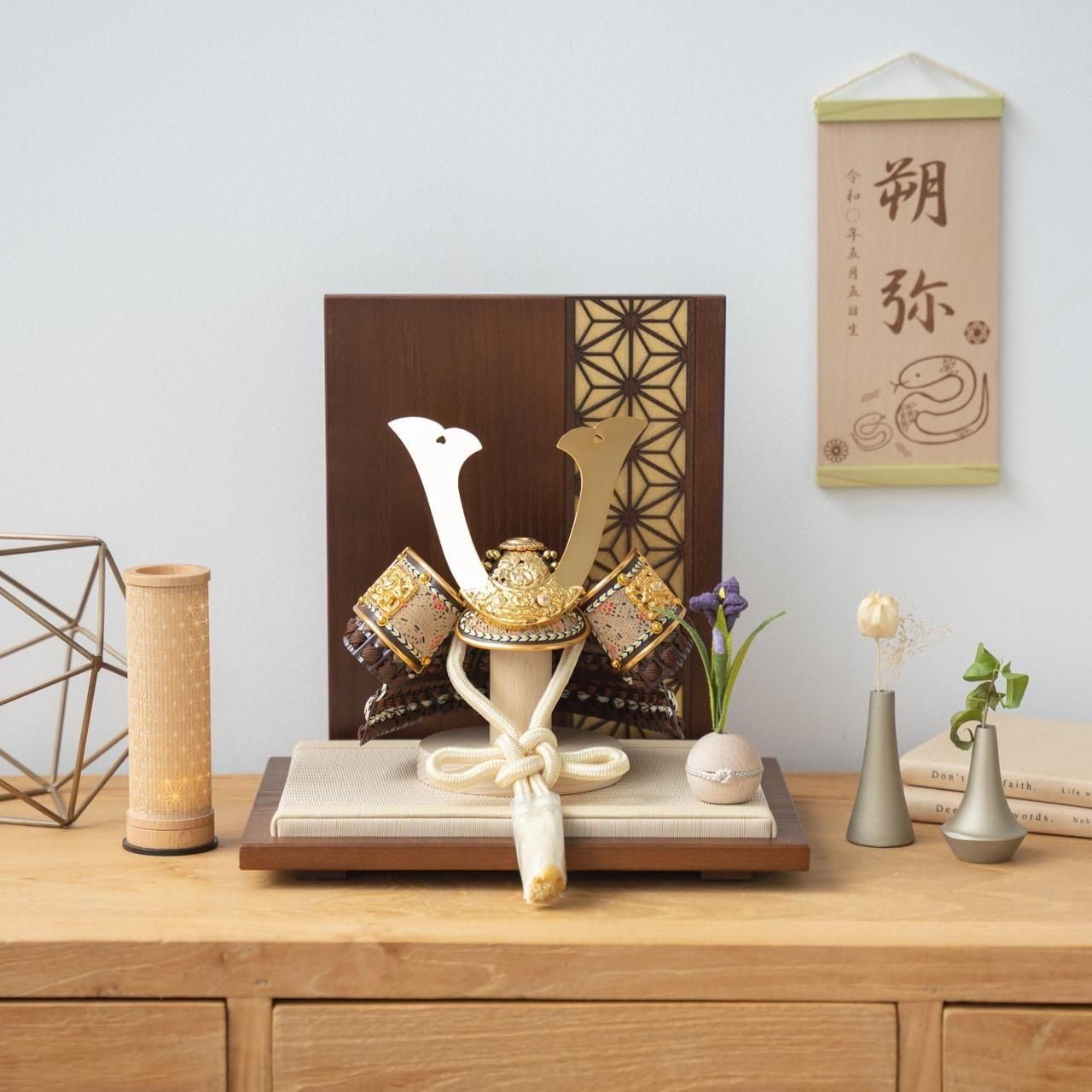 伝統的な兜をモダンに仕上げ茶で統一されたシンプルなデザイン伝統的な製法で作られた兜に天然木の素材を活かしたシンプルなデザインの兜です。モダンで茶に統一されたシンプルなデザインは、どんなお部屋の雰囲気にもピッタリ。