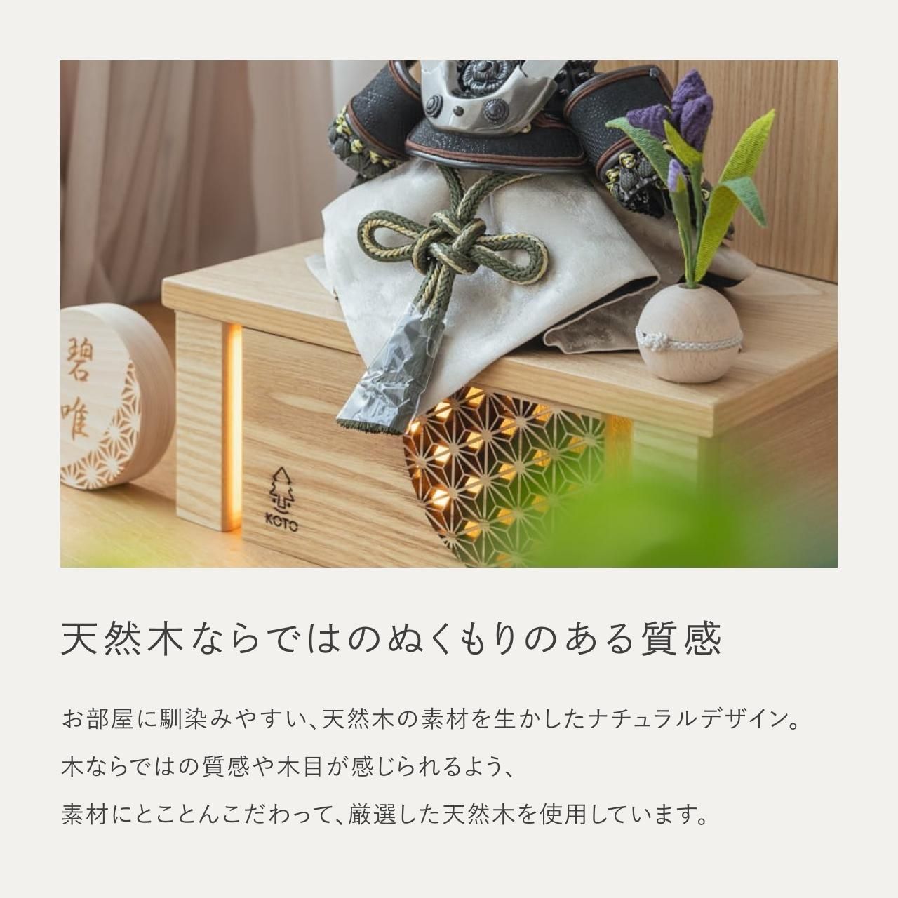 てづくり工房「木都」の職人が、伝統工芸の技術と天然木の素材を活かし、真心込めて1つ1つ丁寧につくりました。親しみやすく、お子様と一緒に飾れる「ことの兜」です。