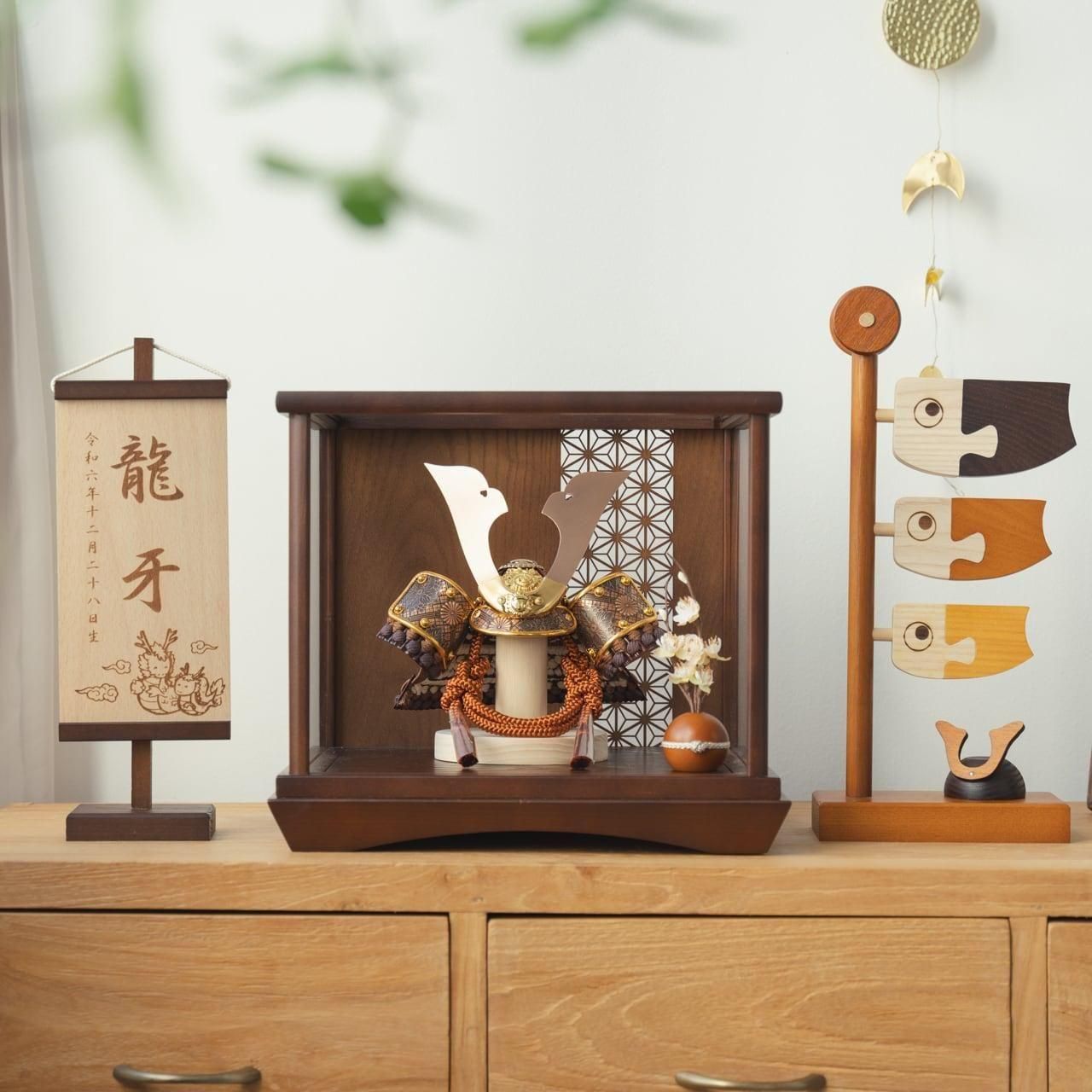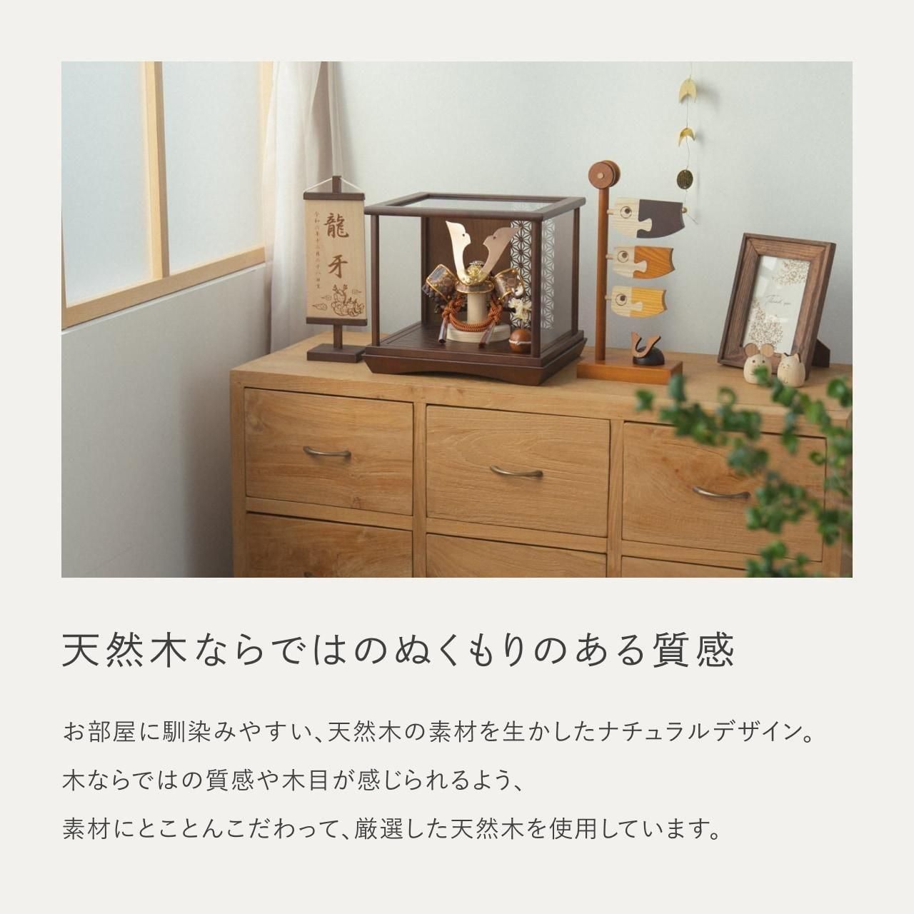 ケースでも手にとって欲しいこだわりの兜ケース伝統工芸の技術、裏側や後ろ側、内部の見えない箇所、素材にまでこだわり抜いた兜飾り。道具も木のぬくもりを感じて頂くために無垢材を使用しております。あえて飾る手間を残し、お子様とご一緒に手にとっていただき本物の素材、質感を感じてほしい「ことの兜」です。※ 細かい部品が含まれています。3歳未満のお子様は、保護者の方と一緒にお遊びください。コンパクトでちょうどいいサイズコンパクトでちょうどいいサイズ今どきのおうちに合わせたコンパクトなサイズに仕上げました。飾るスペースが狭くなりがちなマンションや子ども部屋にもぴったり。伝統的な兜をモダンに仕上げたシンプルなデザイン伝統的な兜をモダンに仕上げたシンプルなデザイン伝統的な製法で作られた兜に天然木の素材を活かしたシンプルなデザインの兜です。モダンでシンプルなデザインは、どんなお部屋の雰囲気にもピッタリ。選び抜いた素材と手間をかけた技法でつくる兜鉢選び抜いた素材と手間をかけた技法でつくる兜鉢ことの兜の兜鉢は、伝統的な本式の合せ鉢という技法でつくられています。本式の合せ鉢とは、戦国時代に頭部を守るために考案され、三角状の鉢部品を重ね合わせ、多数の星鋲をカシメる事で強度を高める技法です。古来からの日本伝統の吉祥文様である麻の葉文様。麻の丈夫さ・成長の早さにあやかり、お子さまの健やかな成長への願いが込められています。古来からの日本伝統の吉祥文様である麻の葉文様。麻の丈夫さ・成長の早さにあやかり、お子さまの健やかな成長への願いが込められています。古来からの日本伝統の吉祥文様である麻の葉文様。麻の丈夫さ・成長の早さにあやかり、お子さまの健やかな成長への願いが込められています。ケースでも手にとって欲しいこだわりの兜ケースでも手にとって欲しいこだわりの兜通常ケースタイプの商品は「取り付け型」と言われ飾る手間を省くために設置箇所が固定されています。本兜は、あえて飾る手間を残し本物の素材や質感をお子様とご一緒に手にとって飾る体験をしてもらいたい為、設置箇所は固定されておりません。また、上部、前、左右にはガラスではなくアクリル板が設置されていますので、万が一の際も安心です。お子さまの感性を育む天然木へのこだわりお子さまの感性を育む天然木へのこだわり素材には、タモ、ブナといった天然木を使用。お子さまへの一生に一度の贈り物だから、木都は自然素材の天然木にこだわり続けています。※ 生産時期により使用する素材が一部変更になる場合がございます。熟練の職人による確かな手仕事熟練の職人による確かな手仕事伝統工芸の技術を受け継ぐ日本国内の熟練の職人が、一つひとつ丁寧に手づくりしています。おしゃれなギフト包装でお届けしますおしゃれなギフト包装でお届けします和の雰囲気を感じさせる越前和紙のギフト用ラッピングでお届け。料金がわかるものもお入れしていないので、そのまま贈り物として利用できます。商品レビュー記入でもれなくもらえる天然木のミニ名前札プレゼント商品レビュー記入でもれなくもらえる天然木のミニ名前札プレゼントミニサイズのお名前札 (通常販売価格1,980円) をプレゼント♪商品到着後、商品レビューをご記入の上、商品と同梱のチラシ記載のQRコードから応募フォームへ必要事項をご入力ください。店舗よりレビュー特典を発送いたします。※ お名前札の生年月日の表記は和暦となります。(例:令和七年)商品のご注文へ収納方法とセット内容兜・鍬形・芯木・花飾り・ケース素材:タモサイズ:W280mm × D240mm × H250mm梱包時:W340mm × D280mm × H275mm兜のみ:約 W170mm × D120mm × H130mm注意事項本品は、金属をふんだんに使用しております。取り扱われる方の人体にすり傷、切り傷、刺傷を及ぼす場合がございますので、左記注意事項をよく読んでお取り扱い下さい。甲冑について飾り付ける際に必ず手袋をご使用ください。錆や変色などの予防にもなります。本品の上には絶対に乗らないでください。本品または本品の部品は装飾品です。他の目的に使用しないで下さい。部品には小さなものがございます。お子様がお口に入れないようにご注意いください。木製品について色合いなど実際のものと写真とでは多少の誤差が生じる場合がございます。また、手作りであり天然木を使用している為、多少の仕様の変化や風合いがひとつひとつ異なります。あらかじめご了承ください。部品には小さなものがございます。お子様がお口に入れないようにご注意いください。菖蒲には針金が入っております。お好みで角度を調整して下さい。材質により刻印の濃淡に差が生じますが不良品ではございません。木製品である限り自然なこととご承知下さいませ。保管場所は変色やカビ、サビの原因になりますので湿気の少ない場所・直射日光の当たらない場所に保管してください。ご不明点がございまし