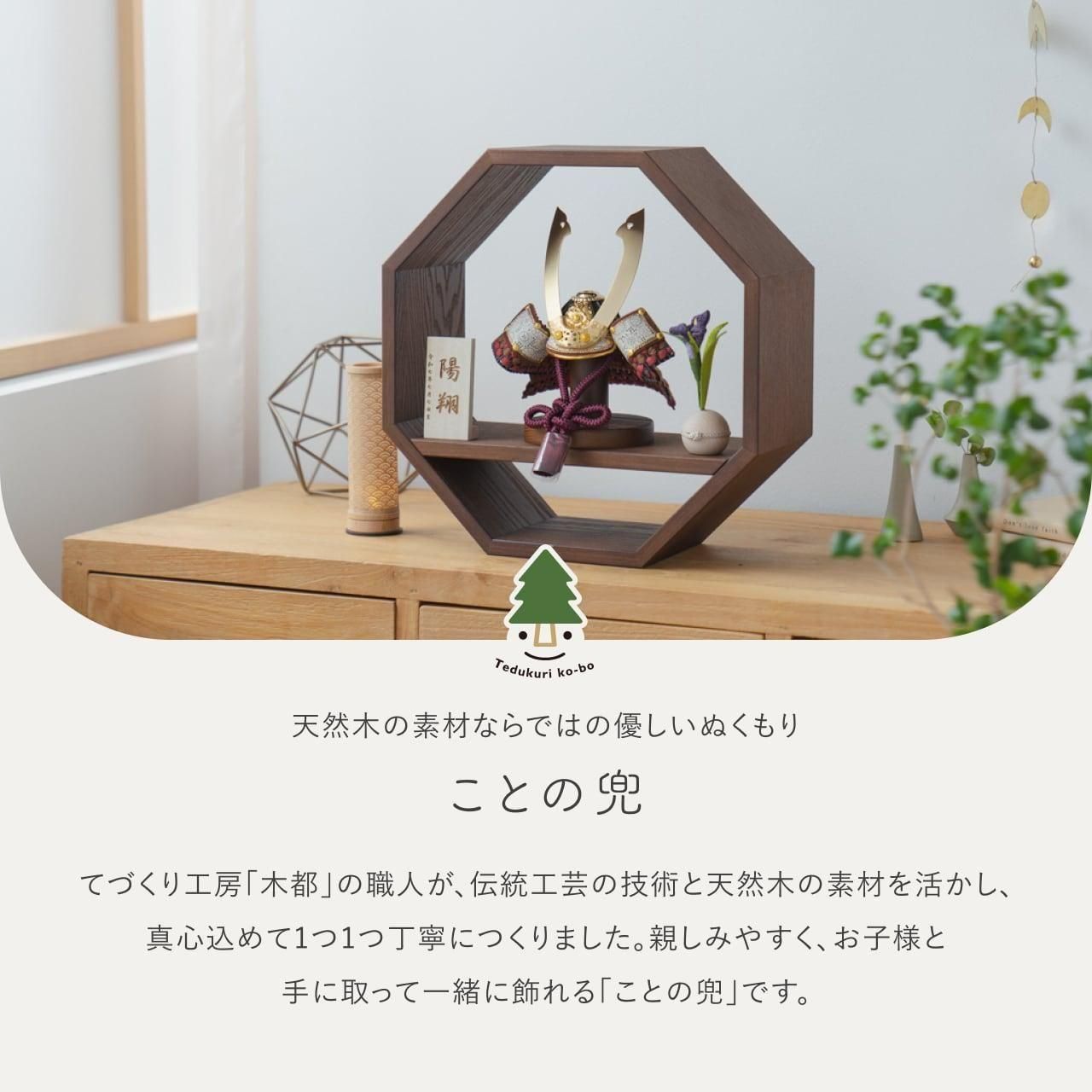 てづくり工房「木都」の職人が、伝統工芸の技術と天然木の素材を活かし、真心込めて1つ1つ丁寧につくりました。親しみやすく、お子様と一緒に飾れる「ことの兜」です。