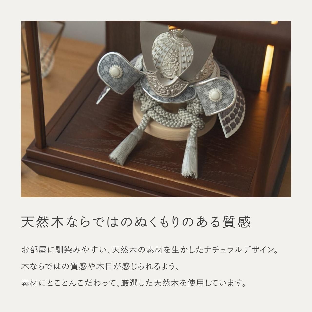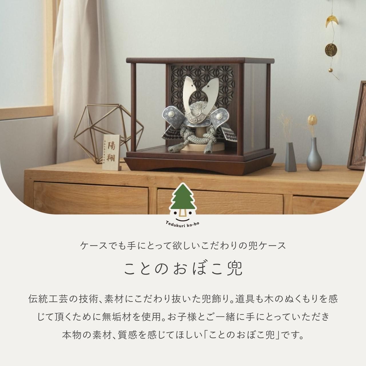 実際に手に取ると天然木の素材ならではの優しいぬくもりが伝わります。てづくり工房「木都」の職人が、伝統工芸の技術と天然木の素材を活かし、真心込めて1つ1つ丁寧につくりました。親しみやすく、お子様と一緒に飾れる「ことのおぼこ兜」です。※ 細かい部品が含まれています。3歳未満のお子様は、保護者の方と一緒にお遊びください。コンパクトでちょうどいいサイズコンパクトでちょうどいいサイズ今どきのおうちに合わせたコンパクトなサイズに仕上げました。飾るスペースが狭くなりがちなマンションや子ども部屋にもぴったり。伝統的な兜をモダンに仕上げたシンプルなデザイン伝統的な兜をモダンに仕上げたシンプルなデザイン伝統的な製法で作られた兜に天然木の素材を活かしたシンプルなデザインの兜です。モダンでシンプルなデザインは、どんなお部屋の雰囲気にもピッタリ。丸みを帯びた親しみやすいフォルム丸みを帯びた親しみやすいフォルム吹き返しやまびさし、鍬形にいたるまで、全体的に丸みを帯びた形状に仕上げました。伝統的な兜でありながら、親しみやすさを感じる兜です。選び抜いた素材と手間をかけた技法でつくる兜鉢選び抜いた素材と手間をかけた技法でつくる兜鉢ことのおぼこ兜の兜鉢は、伝統的な本式の合せ鉢という技法でつくられています。本式の合せ鉢とは、戦国時代に頭部を守るために考案され、三角状の鉢部品を重ね合わせ、多数の星鋲をカシメる事で強度を高める技法です。健やかな成長への願いを込めた麻の葉文様健やかな成長への願いを込めた麻の葉文様古来からの日本伝統の吉祥文様である麻の葉文様。麻の丈夫さ・成長の早さにあやかり、お子さまの健やかな成長への願いが込められています。ケースでも手にとって欲しいこだわりの兜ケースでも手にとって欲しいこだわりの兜木都のケース飾りは、本物の素材や質感を感じながら親子で一緒に手に取って飾る体験をしてほしいから、あえて飾る手間を残しています。手間はかかりますが、伝統的な技法で一つひとつ手づくりしています。お子さまの感性を育む天然木へのこだわりお子さまの感性を育む天然木へのこだわり素材には、タモ、ブナといった天然木を使用。お子さまへの一生に一度の贈り物だから、木都は自然素材の天然木にこだわり続けています。※ 生産時期により使用する素材が一部変更になる場合がございます。熟練の職人による確かな手仕事熟練の職人による確かな手仕事伝統工芸の技術を受け継ぐ日本国内の熟練の職人が、一つひとつ丁寧に手づくりしています。おしゃれなギフト包装でお届けしますおしゃれなギフト包装でお届けします和の雰囲気を感じさせる越前和紙のギフト用ラッピングでお届け。料金がわかるものもお入れしていないので、そのまま贈り物として利用できます。商品レビュー記入でもれなくもらえる天然木のミニ名前札プレゼント商品レビュー記入でもれなくもらえる天然木のミニ名前札プレゼントミニサイズのお名前札 (通常販売価格1,980円) をプレゼント♪商品到着後、商品レビューをご記入の上、商品と同梱のチラシ記載のQRコードから応募フォームへ必要事項をご入力ください。店舗よりレビュー特典を発送いたします。※ お名前札の生年月日の表記は和暦となります。(例:令和七年)商品のご注文へ収納方法とセット内容兜・鍬形・芯木・ケース・電源ケーブル素材:タモサイズ:W280mm × D240mm × H250mm梱包時:W340mm × D280mm × H275mm兜のみ:約 W180mm × D140mm × H130mm注意事項甲冑について飾り付ける際に必ず手袋をご使用ください。錆や変色などの予防にもなります。本品の上には絶対に乗らないでください。本品または本品の部品は装飾品です。他の目的に使用しないで下さい。部品には小さなものがございます。お子様がお口に入れないようにご注意いください。木製品について色合いなど実際のものと写真とでは多少の誤差が生じる場合がございます。また、手作りであり天然木を使用している為、多少の仕様の変化や風合いがひとつひとつ異なります。あらかじめご了承ください。部品には小さなものがございます。お子様がお口に入れないようにご注意いください。菖蒲には針金が入っております。お好みで角度を調整して下さい。材質により刻印の濃淡に差が生じますが不良品ではございません。木製品である限り自然なこととご承知下さいませ。保管場所は変色やカビ、サビの原因になりますので湿気の少ない場所・直射日光の当たらない場所に保管してください。ご不明点がございましたら > お問い合わせページ からご相談ください。