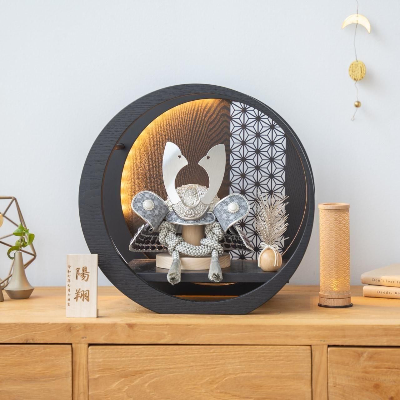 実際に手に取ると天然木の素材ならではの優しいぬくもりが伝わります。てづくり工房「木都」の職人が、伝統工芸の技術と天然木の素材を活かし、真心込めて1つ1つ丁寧につくりました。親しみやすく、お子様と一緒に飾れる「ことのおぼこ兜」です。※ 細かい部品が含まれています。3歳未満のお子様は、保護者の方と一緒にお遊びください。コンパクトでちょうどいいサイズコンパクトでちょうどいいサイズ今どきのおうちに合わせたコンパクトなサイズに仕上げました。飾るスペースが狭くなりがちなマンションや子ども部屋にもぴったり。伝統的な兜をモダンに仕上げたシンプルなデザイン伝統的な兜をモダンに仕上げたシンプルなデザイン伝統的な製法で作られた兜に天然木の素材を活かしたシンプルなデザインの兜です。モダンでシンプルなデザインは、どんなお部屋の雰囲気にもピッタリ。丸みを帯びた親しみやすいフォルム丸みを帯びた親しみやすいフォルム吹き返しやまびさし、鍬形にいたるまで、全体的に丸みを帯びた形状に仕上げました。伝統的な兜でありながら、親しみやすさを感じる兜です。選び抜いた素材と手間をかけた技法でつくる兜鉢選び抜いた素材と手間をかけた技法でつくる兜鉢ことのおぼこ兜の兜鉢は、伝統的な本式の合せ鉢という技法でつくられています。本式の合せ鉢とは、戦国時代に頭部を守るために考案され、三角状の鉢部品を重ね合わせ、多数の星鋲をカシメる事で強度を高める技法です。健やかな成長への願いを込めた麻の葉文様健やかな成長への願いを込めた麻の葉文様古来からの日本伝統の吉祥文様である麻の葉文様。麻の丈夫さ・成長の早さにあやかり、お子さまの健やかな成長への願いが込められています。お子さまの感性を育む天然木へのこだわりお子さまの感性を育む天然木へのこだわり素材には、タモ、ブナといった天然木を使用。お子さまへの一生に一度の贈り物だから、木都は自然素材の天然木にこだわり続けています。※ 生産時期により使用する素材が一部変更になる場合がございます。熟練の職人による確かな手仕事熟練の職人による確かな手仕事伝統工芸の技術を受け継ぐ日本国内の熟練の職人が、一つひとつ丁寧に手づくりしています。おしゃれなギフト包装でお届けしますおしゃれなギフト包装でお届けします和の雰囲気を感じさせる越前和紙のギフト用ラッピングでお届け。料金がわかるものもお入れしていないので、そのまま贈り物として利用できます。商品レビュー記入でもれなくもらえる天然木のミニ名前札プレゼント商品レビュー記入でもれなくもらえる天然木のミニ名前札プレゼントミニサイズのお名前札 (通常販売価格1,980円) をプレゼント♪商品到着後、商品レビューをご記入の上、商品と同梱のチラシ記載のQRコードから応募フォームへ必要事項をご入力ください。店舗よりレビュー特典を発送いたします。※ お名前札の生年月日の表記は和暦となります。(例:令和七年)商品のご注文へ収納方法とセット内容兜・鍬形・芯木・松・飾り台・電源ケーブル素材:タモサイズ:W300mm × D195mm × H290mm梱包時:W340mm × D240mm × H330mm兜のみ:約 W180mm × D140mm × H130mm注意事項甲冑について飾り付ける際に必ず手袋をご使用ください。錆や変色などの予防にもなります。本品の上には絶対に乗らないでください。本品または本品の部品は装飾品です。他の目的に使用しないで下さい。部品には小さなものがございます。お子様がお口に入れないようにご注意いください。木製品について色合いなど実際のものと写真とでは多少の誤差が生じる場合がございます。また、手作りであり天然木を使用している為、多少の仕様の変化や風合いがひとつひとつ異なります。あらかじめご了承ください。部品には小さなものがございます。お子様がお口に入れないようにご注意いください。菖蒲には針金が入っております。お好みで角度を調整して下さい。材質により刻印の濃淡に差が生じますが不良品ではございません。木製品である限り自然なこととご承知下さいませ。保管場所は変色やカビ、サビの原因になりますので湿気の少ない場所・直射日光の当たらない場所に保管してください。ご不明点がございましたら > お問い合わせページ からご相談ください。