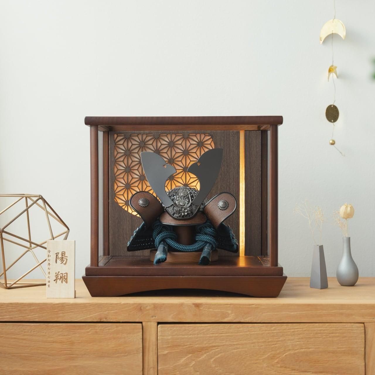 伝統的な製法で作られた兜に天然木の素材を活かしたシンプルなデザインの兜です。モダンでシンプルなデザインは、どんなお部屋の雰囲気にもピッタリ。