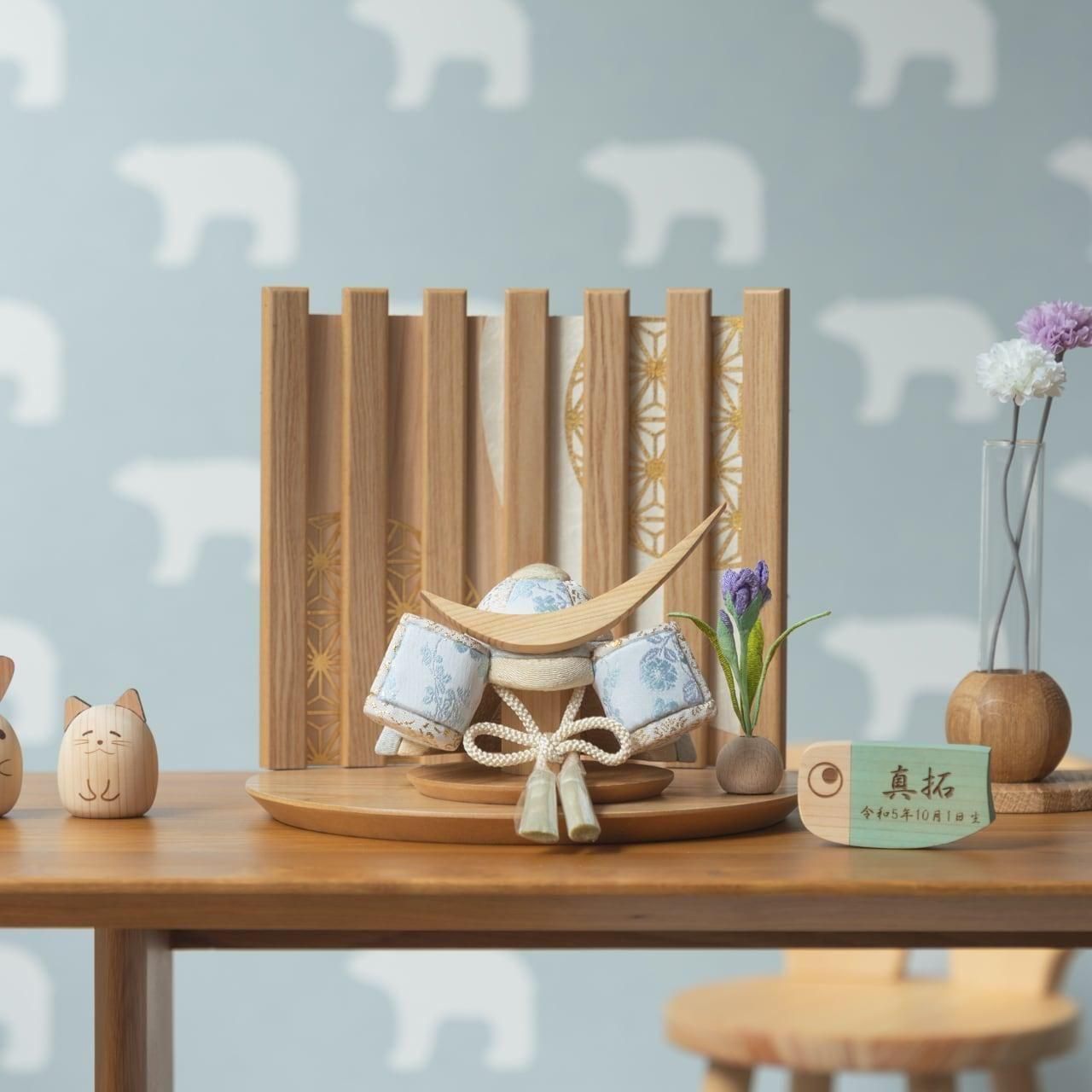 実際に手に取ると天然木の素材ならではの優しいぬくもりが伝わります。てづくり工房「木都」の職人が、伝統工芸の技術と天然木の素材を活かし、真心込めて1つ1つ丁寧につくりました。親しみやすく、お子様と一緒に飾れる 「ことの木目込かぶと」です。※ 細かい部品が含まれています。3歳未満のお子様は、保護者の方と一緒にお遊びください。 コンパクトでちょうどいいサイズコンパクトでちょうどいいサイズ今どきのおうちに合わせたコンパクトなサイズに仕上げました。飾るスペースが狭くなりがちなマンションや子ども部屋にもぴったり。お衣装へのこだわりお衣装へのこだわり有職裂地に桜と牡丹、菊の柄をあしらっています。有職とは「有職故事」という宮廷の決まり事に準拠した色彩や文様で、それらで造った衣装を有職衣装と呼びます。桜は豊かさ、牡丹は富貴、菊は無病息災や長寿の意味があります。お部屋のイメージに調和するデザインお部屋のイメージに調和するデザイン天然木の素材を活かしたシンプルなデザインだから、お部屋の雰囲気にもピッタリ。富士山の麓でとれた桧富士山の麓でとれた桧鍬形の素材には、富士山麓の無垢のヒノキを使用しています。お子さまの感性を育む天然木へのこだわりお子さまの感性を育む天然木へのこだわり素材には、桧、タモといった天然木を使用。お子さまへの一生に一度の贈り物だから、木都は自然素材の天然木にこだわり続けています。※ 生産時期により使用する素材が一部変更になる場合がございます。熟練の職人による確かな手仕事熟練の職人による確かな手仕事伝統工芸の技術を受け継ぐ日本国内の熟練の職人が、一つひとつ丁寧に手づくりしています。おしゃれなギフト包装でお届けしますおしゃれなギフト包装でお届けします和の雰囲気を感じさせる越前和紙のギフト用ラッピングでお届け。料金がわかるものもお入れしていないので、そのまま贈り物として利用できます。商品レビュー記入でもれなくもらえる天然木のミニ名前札プレゼント商品レビュー記入でもれなくもらえる天然木のミニ名前札プレゼントミニサイズのお名前札 (通常販売価格1,980円) をプレゼント♪商品到着後、商品レビューをご記入の上、商品と同梱のチラシ記載のQRコードから応募フォームへ必要事項をご入力ください。店舗よりレビュー特典を発送いたします。※ お名前札の生年月日の表記は和暦となります。(例:令和七年)商品のご注文へ収納方法とセット内容兜・鍬形・芯木・菖蒲・屏風・平台素材:桧・タモサイズ:W215mm × D180mm × H200mm梱包時:W270mm × D240mm × H125mm兜のみ:約 W130mm × D125mm × H110mm注意事項色合いなど実際のものと写真とでは多少の誤差が生じる場合がございます。また、手作りであり天然木を使用している為、多少の仕様の変化や風合いがひとつひとつ異なります。あらかじめご了承ください。部品には小さなものがございます。お子様がお口に入れないようにご注意ください。観賞用ではございますが手にとって遊んでいただくことも可能です。鍬形部は折れやすくなっております。強い衝撃を与えたり落としたりしないで下さい。材質により目の刻印の濃淡に差が生じますが不良品ではございません。木製品である限り自然なこととご承知下さいませ。保管場所は変色やカビ、サビの原因になりますので湿気の少ない場所・直射日光の当たらない場所に保管してください。ご不明点がございましたら > お問い合わせページ からご相談ください。