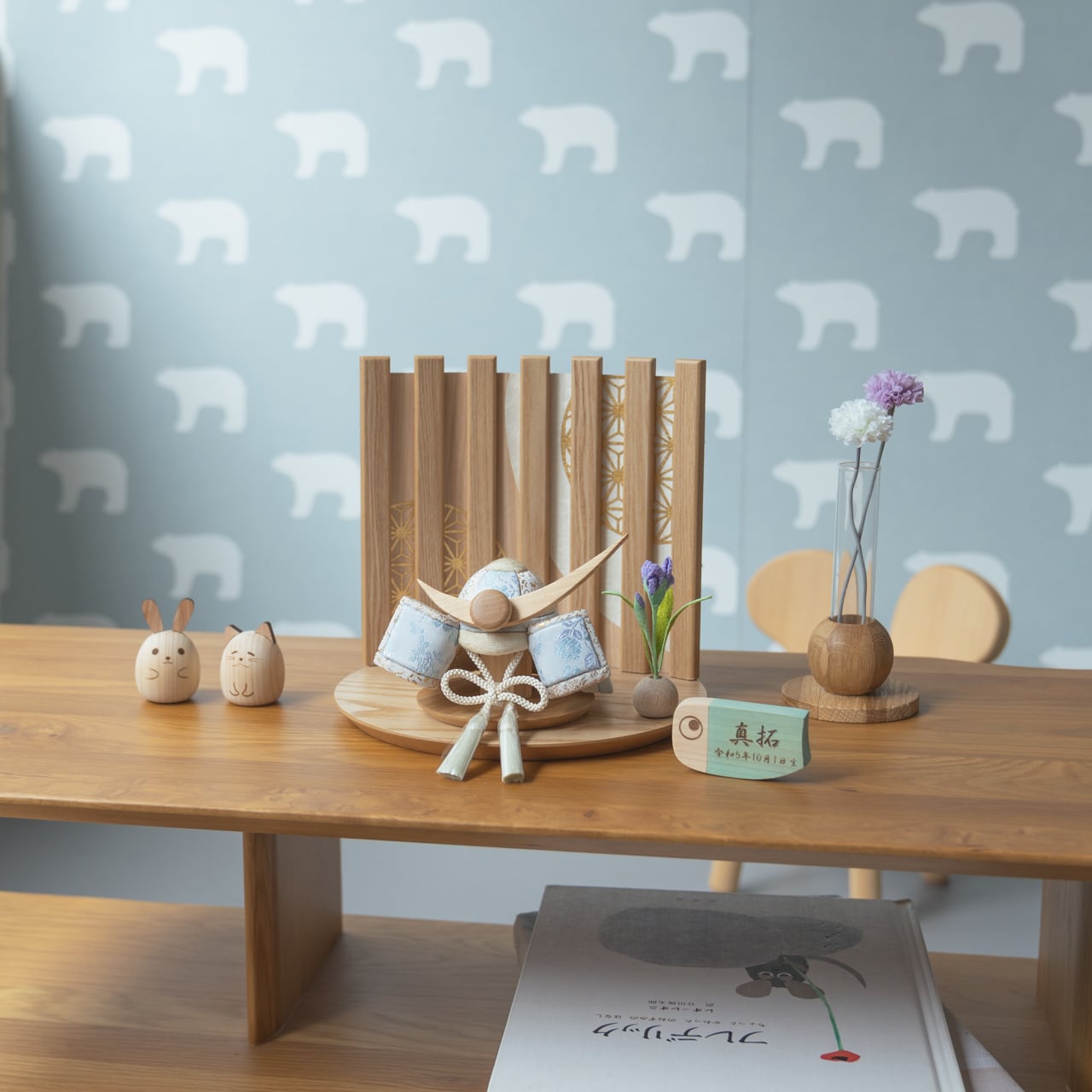 実際に手に取ると天然木の素材ならではの優しいぬくもりが伝わります。てづくり工房「木都」の職人が、伝統工芸の技術と天然木の素材を活かし、真心込めて1つ1つ丁寧につくりました。親しみやすく、お子様と一緒に飾れる 「ことの木目込かぶと」です。※ 細かい部品が含まれています。3歳未満のお子様は、保護者の方と一緒にお遊びください。 コンパクトでちょうどいいサイズコンパクトでちょうどいいサイズ今どきのおうちに合わせたコンパクトなサイズに仕上げました。飾るスペースが狭くなりがちなマンションや子ども部屋にもぴったり。お衣装へのこだわりお衣装へのこだわり有職裂地に桜と牡丹、菊の柄をあしらっています。有職とは「有職故事」という宮廷の決まり事に準拠した色彩や文様で、それらで造った衣装を有職衣装と呼びます。桜は豊かさ、牡丹は富貴、菊は無病息災や長寿の意味があります。お部屋のイメージに調和するデザインお部屋のイメージに調和するデザイン天然木の素材を活かしたシンプルなデザインだから、お部屋の雰囲気にもピッタリ。富士山の麓でとれた桧富士山の麓でとれた桧鍬形の素材には、富士山麓の無垢のヒノキを使用しています。健やかな成長への願いを込めた麻の葉文様健やかな成長への願いを込めた麻の葉文様古来からの日本伝統の吉祥文様である麻の葉文様。麻の丈夫さ・成長の早さにあやかり、お子さまの健やかな成長への願いが込められています。お子さまの感性を育む天然木へのこだわりお子さまの感性を育む天然木へのこだわり素材には、桧、タモといった天然木を使用。お子さまへの一生に一度の贈り物だから、木都は自然素材の天然木にこだわり続けています。※ 生産時期により使用する素材が一部変更になる場合がございます。熟練の職人による確かな手仕事熟練の職人による確かな手仕事伝統工芸の技術を受け継ぐ日本国内の熟練の職人が、一つひとつ丁寧に手づくりしています。おしゃれなギフト包装でお届けしますおしゃれなギフト包装でお届けします和の雰囲気を感じさせる越前和紙のギフト用ラッピングでお届け。料金がわかるものもお入れしていないので、そのまま贈り物として利用できます。商品レビュー記入でもれなくもらえる天然木のミニ名前札プレゼント商品レビュー記入でもれなくもらえる天然木のミニ名前札プレゼントミニサイズのお名前札 (通常販売価格1,980円) をプレゼント♪商品到着後、商品レビューをご記入の上、商品と同梱のチラシ記載のQRコードから応募フォームへ必要事項をご入力ください。店舗よりレビュー特典を発送いたします。※ お名前札の生年月日の表記は和暦となります。(例:令和七年)商品のご注文へ収納方法とセット内容兜・鍬形・芯木・菖蒲・屏風・平台素材:桧・タモサイズ:W215mm × D180mm × H200mm梱包時:W270mm × D240mm × H125mm兜のみ:約 W130mm × D125mm × H110mm注意事項色合いなど実際のものと写真とでは多少の誤差が生じる場合がございます。また、手作りであり天然木を使用している為、多少の仕様の変化や風合いがひとつひとつ異なります。あらかじめご了承ください。部品には小さなものがございます。お子様がお口に入れないようにご注意ください。観賞用ではございますが手にとって遊んでいただくことも可能です。鍬形部は折れやすくなっております。強い衝撃を与えたり落としたりしないで下さい。材質により目の刻印の濃淡に差が生じますが不良品ではございません。木製品である限り自然なこととご承知下さいませ。保管場所は変色やカビ、サビの原因になりますので湿気の少ない場所・直射日光の当たらない場所に保管してください。ご不明点がございましたら > お問い合わせページ からご相談ください。