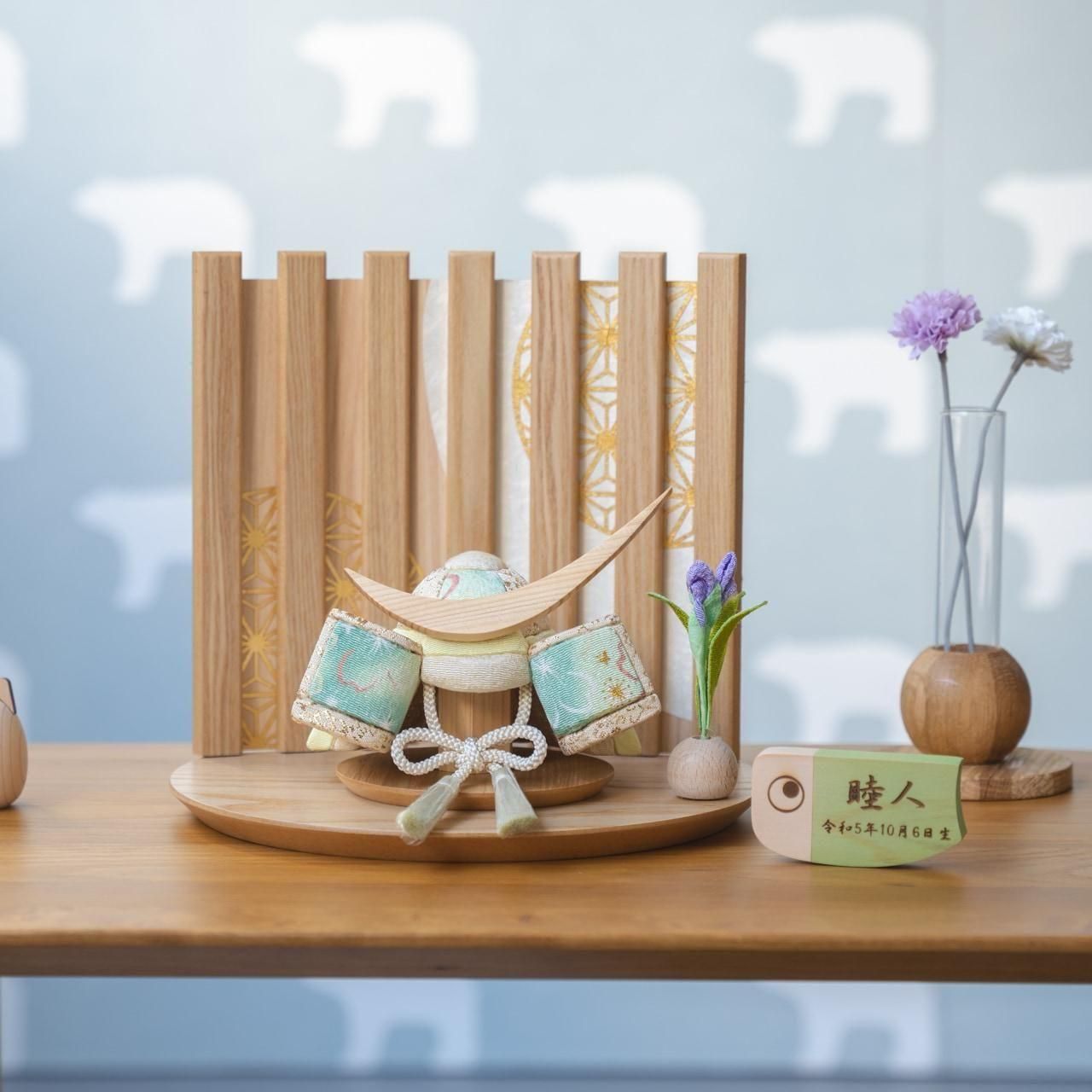 てづくり工房「木都」の職人が、伝統工芸の技術と天然木の素材を活かし、真心込めて1つ1つ丁寧につくりました。親しみやすく、お子様と一緒に飾れる 「ことの木目込かぶと」です。
