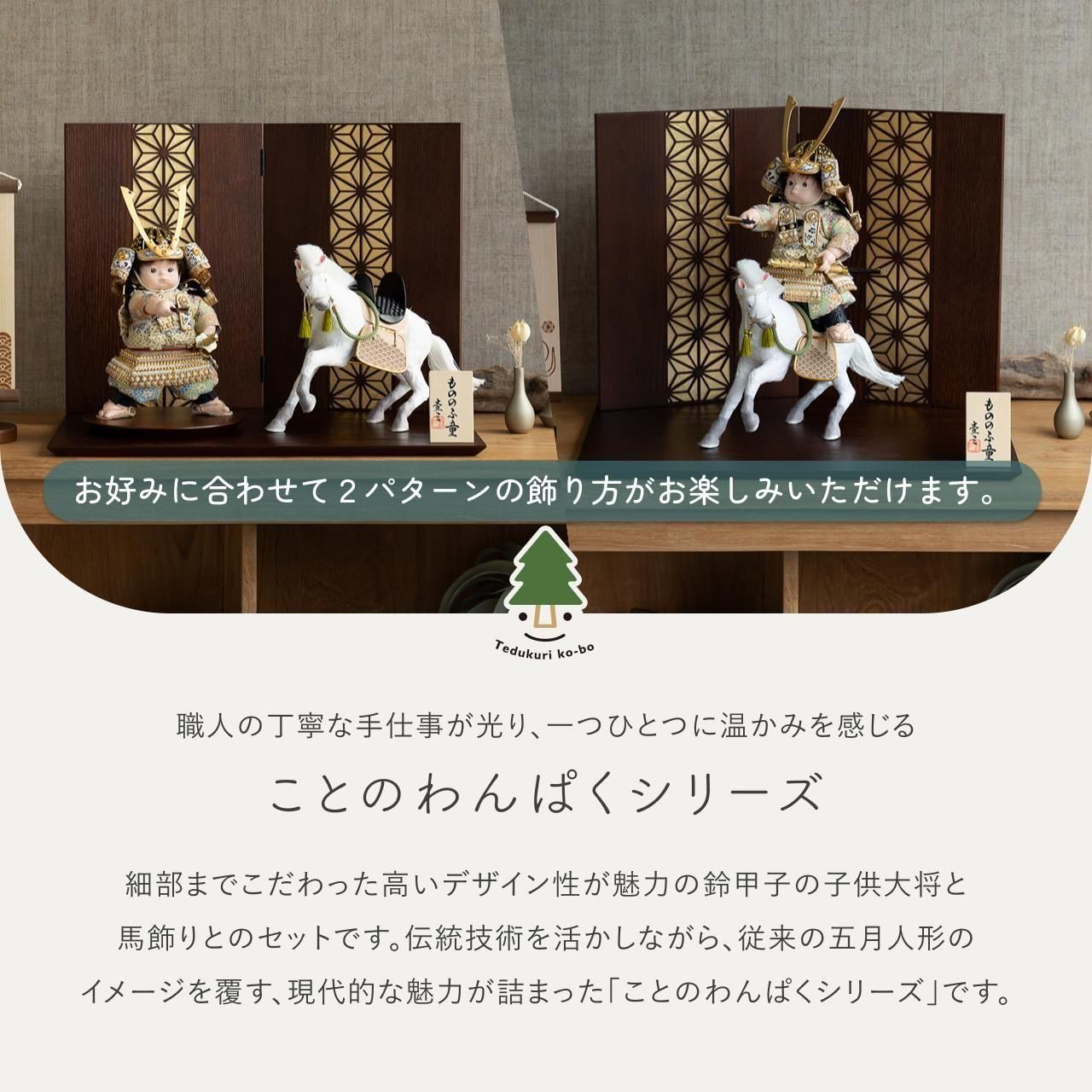 職人の丁寧な手仕事が光り、一つひとつに温かみを感じられます。伝統技術を活かしながら、従来の五月人形のイメージを覆す、現代的な魅力が詰まった「ことのわんぱくシリーズ」です。