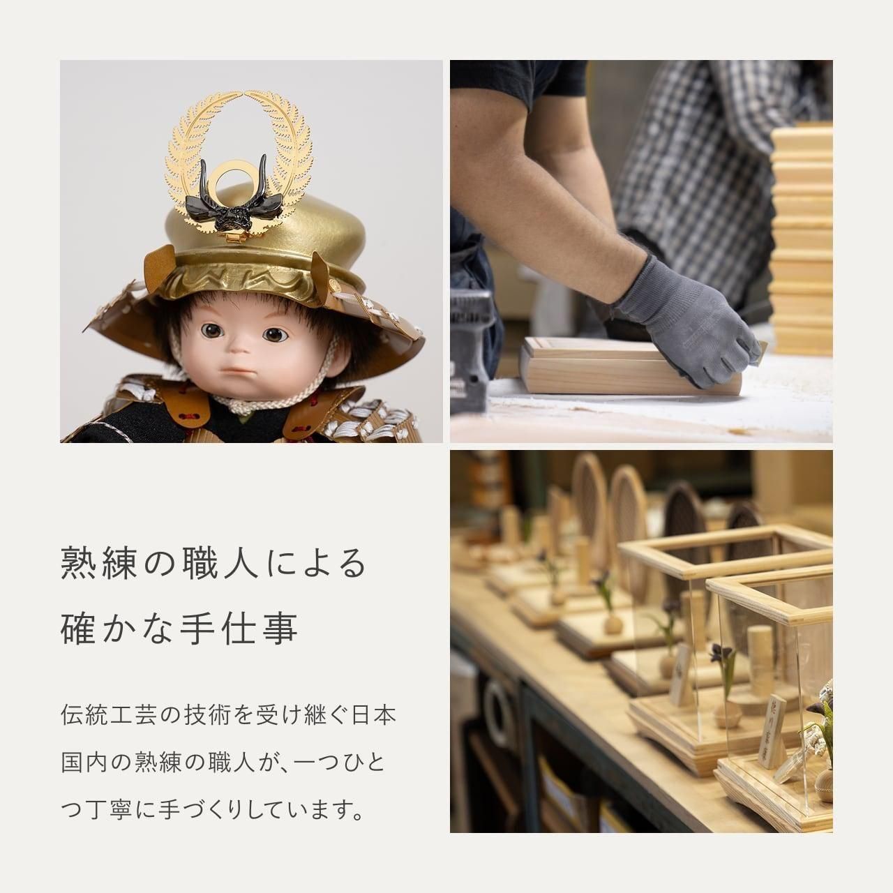 職人の丁寧な手仕事が光り、一つひとつに温かみを感じられます。伝統技術を活かしながら、従来の五月人形のイメージを覆す、現代的な魅力が詰まった「ことのわんぱくシリーズ」です。