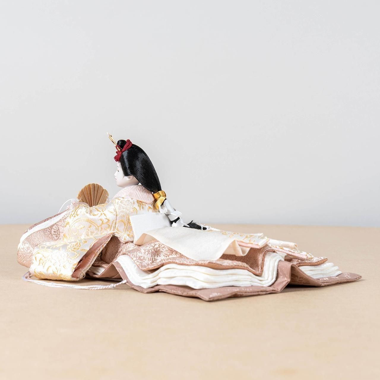 平安という言葉は平安京に由来しており、「穏やか」「安泰」といった願いが込められております。ことの平安ひなとは、お子様の成長や未来が穏やかで無事であるよう祈りを込めたお雛様です。そんな雛人形をてづくり工房「木都」の職人が、伝統工芸の技術と天然木の素材を活かし、真心込めて1つ1つ丁寧につくりました。コンパクトでちょうどいいサイズコンパクトでちょうどいいサイズ今どきのおうちに合わせたコンパクトなサイズに仕上げました。飾るスペースが狭くなりがちなマンションや子ども部屋にもぴったり。お部屋のイメージに調和するデザインお部屋のイメージに調和するデザイン天然木の素材を活かしたシンプルなデザインだから、お部屋の雰囲気にもピッタリ。お衣装へのこだわり 〜正絹 二重蔓牡丹文〜お衣装へのこだわり 〜正絹 二重蔓牡丹文〜日本の伝統的な文様の一つである、牡丹の花と唐草模様が組み合わさった「牡丹唐草」。牡丹には「不老不死」と「不老長寿」という意味が込められており、また、華やかで美しい牡丹の花は美と富の象徴とされています。そんな牡丹唐草の柄と小さいながらも光沢のある生地を合わせ、可愛らしさと高級感のある雛人形に仕上げました。手作りへのこだわり 〜裂地(きれじ)の裁断手作りへのこだわり 〜裂地(きれじ)の裁断和紙で衣裳の各種型紙を作り、へり部分にのみ糊をつけ、裂地裏面に貼り付けます。型紙に沿って裁断して衣裳部品を作っていきます。手作りへのこだわり 〜縫製手作りへのこだわり 〜縫製姫の十二単の唐衣(からぎぬ)・五衣(いつつぎぬ)・単衣(ひとえ)・裾、殿の着物・裾・中袖等、数多くの衣裳部品をミシン、または手縫いで細やかな部分まで縫い合わせ、折り込み仕上げていきます。手作りへのこだわり 〜着付け・振付け手作りへのこだわり 〜着付け・振付け仕上がった衣裳は両腕を後方に曲げて羽織らせるようにして着付けます。次にそれぞれの人形の形に振付けます。腕を曲げる角度や手の位置などで全体のバランスを取ります。手作りへのこだわり 〜頭差し手作りへのこだわり 〜頭差し頭さしは最終の人形検品を兼ねて行われます。包まれた顔紙を外し、汚れ等無いことを確認します。頭と衣紋の中心線が一直線になるように差し込みます。ことのお雛様ことのお雛様お雛様の顔は時代とともに人気のお顔があります。ことのお雛様のお顔は時代に左右されない普遍的なシンプルで可愛らしいお顔となっています。お子さまの感性を育む天然木へのこだわりお子さまの感性を育む天然木へのこだわり素材には、タモ、ブナといった天然木を使用。お子さまへの一生に一度の贈り物だから、木都は自然素材の天然木にこだわり続けています。※ 生産時期により使用する素材が一部変更になる場合がございます。熟練の職人による確かな手仕事熟練の職人による確かな手仕事伝統工芸の技術を受け継ぐ日本国内の熟練の職人が、一つひとつ丁寧に手づくりしています。おしゃれなギフト包装でお届けしますおしゃれなギフト包装でお届けします和の雰囲気を感じさせる越前和紙のギフト用ラッピングでお届け。料金がわかるものもお入れしていないので、そのまま贈り物として利用できます。商品レビュー記入でもれなくもらえる天然木のミニ名前札プレゼント商品レビュー記入でもれなくもらえる天然木のミニ名前札プレゼントミニサイズのお名前札 (通常販売価格1,980円) をプレゼント♪商品到着後、商品レビューをご記入の上、商品と同梱のチラシ記載のQRコードから応募フォームへ必要事項をご入力ください。店舗よりレビュー特典を発送いたします。※ お名前札の生年月日の表記は和暦となります。(例:令和七年)商品のご注文へ収納方法とセット内容お内裏様・お雛様・屏風・平台・人形小道具・貝桶×2・花飾り×2素材:ブナ重量:2,050g サイズ:W450mm × D300mm × H225mm梱包時:W465mm × D315mm × H205mm殿:約 W155mm × D100mm × H165mm姫:約 W140mm × D440mm × H110mm注意事項色合いなど実際のものと写真とでは多少の誤差が生じる場合がございます。また、手作りであり天然木を使用している為、多少の仕様の変化や風合いがひとつひとつ異なります。あらかじめご了承ください。部品には小さなものがございます。お子様がお口に入れないようにご注意ください。材質により木の刻印の濃淡に差が生じますが不良品ではございません。木製品である限り自然なこととご承知下さいませ。保管場所は変色やカビ、サビの原因になりますので湿気の少ない場所・直射日光の当たらない場所に保管してください。雄雛の正面にあります飾り帯のビニールは外さないでください。本商品に行燈は付属しておりません。別途お買い求めください。ご不明点がございましたら > お問い合わせページ からご相談ください。