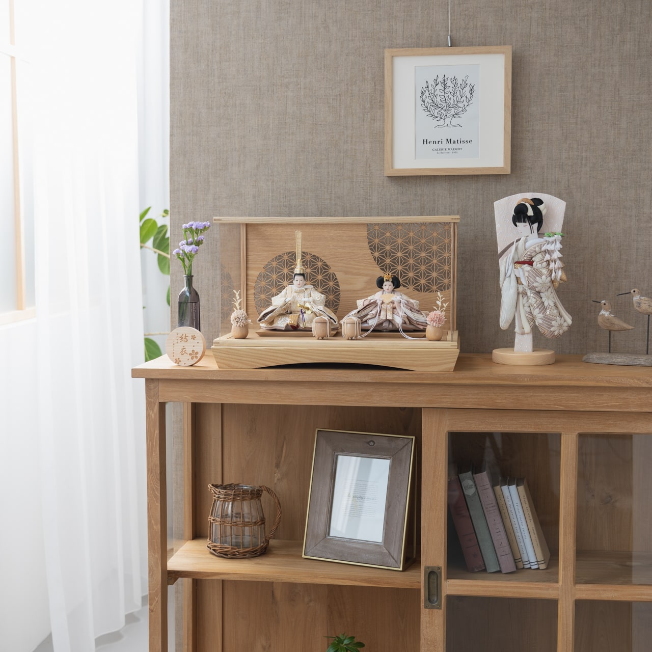 ケースでも手にとって欲しいこだわりのひな人形伝統工芸の技術、裏側や後ろ側、内部の見えない箇所や素材にまでこだわり抜いたひな人形。道具も木のぬくもりを感じて頂くために無垢材を使用しております。あえて飾る手間を残し、お子様とご一緒に手にとっていただき本物の素材、質感を感じてほしい「ことのひな人形」です。コンパクトでちょうどいいサイズコンパクトでちょうどいいサイズ今どきのおうちに合わせたコンパクトなサイズに仕上げました。飾るスペースが狭くなりがちなマンションや子ども部屋にもぴったり。お部屋のイメージに調和するデザインお部屋のイメージに調和するデザイン天然木の素材を活かしたシンプルなデザインだから、お部屋の雰囲気にもピッタリ。お衣装へのこだわり 〜正絹 二重蔓牡丹文〜お衣装へのこだわり 〜正絹 二重蔓牡丹文〜日本の伝統的な文様の一つである、牡丹の花と唐草模様が組み合わさった「牡丹唐草」。牡丹には「不老不死」と「不老長寿」という意味が込められており、また、華やかで美しい牡丹の花は美と富の象徴とされています。そんな牡丹唐草の柄と小さいながらも光沢のある生地を合わせ、可愛らしさと高級感のある雛人形に仕上げました。手作りへのこだわり〜裂地(きれじ)の裁断手作りへのこだわり〜裂地(きれじ)の裁断和紙で衣裳の各種型紙を作り、へり部分にのみ糊をつけ、裂地裏面に貼り付けます。型紙に沿って裁断して衣裳部品を作っていきます。手作りへのこだわり〜縫製手作りへのこだわり〜縫製姫の十二単の唐衣(からぎぬ)・五衣(いつつぎぬ)・単衣(ひとえ)・裾、殿の着物・裾・中袖等、数多くの衣裳部品をミシン、または手縫いで細やかな部分まで縫い合わせ、折り込み仕上げていきます。手作りへのこだわり〜着付け・振付け手作りへのこだわり〜着付け・振付け仕上がった衣裳は両腕を後方に曲げて羽織らせるようにして着付けます。次にそれぞれの人形の形に振付けます。腕を曲げる角度や手の位置などで全体のバランスを取ります。手作りへのこだわり〜頭差し手作りへのこだわり〜頭差し頭さしは最終の人形検品を兼ねて行われます。包まれた顔紙を外し、汚れ等無いことを確認します。頭と衣紋の中心線が一直線になるように差し込みます。ことのお雛様ことのお雛様お雛様の顔は時代とともに人気のお顔があります。ことのお雛様のお顔は時代に左右されない普遍的なシンプルで可愛らしいお顔となっています。健やかな成長への願いを込めた麻の葉文様健やかな成長への願いを込めた麻の葉文様古来からの日本伝統の吉祥文様である麻の葉文様。麻の丈夫さ・成長の早さにあやかり、お子さまの健やかな成長への願いが込められています。ケース飾りでも手に取って本物の質感を感じてほしいケース飾りでも手に取って本物の質感を感じてほしい木都のケース飾りは、本物の素材や質感を感じながら親子で一緒に手に取って飾る体験をしてほしいから、あえて飾る手間を残しています。手間はかかりますが、伝統的な技法で一つひとつ手づくりしています。お子さまの感性を育む天然木へのこだわりお子さまの感性を育む天然木へのこだわり素材には、タモ、ブナといった天然木を使用。お子さまへの一生に一度の贈り物だから、木都は自然素材の天然木にこだわり続けています。※ 生産時期により使用する素材が一部変更になる場合がございます。熟練の職人による確かな手仕事熟練の職人による確かな手仕事伝統工芸の技術を受け継ぐ日本国内の熟練の職人が、一つひとつ丁寧に手づくりしています。おしゃれなギフト包装でお届けしますおしゃれなギフト包装でお届けします和の雰囲気を感じさせる越前和紙のギフト用ラッピングでお届け。料金がわかるものもお入れしていないので、そのまま贈り物として利用できます。商品レビュー記入でもれなくもらえる天然木のミニ名前札プレゼント商品レビュー記入でもれなくもらえる天然木のミニ名前札プレゼントミニサイズのお名前札 (通常販売価格1,980円) をプレゼント♪商品到着後、商品レビューをご記入の上、商品と同梱のチラシ記載のQRコードから応募フォームへ必要事項をご入力ください。店舗よりレビュー特典を発送いたします。※ お名前札の生年月日の表記は和暦となります。(例:令和八年)商品のご注文へ収納方法とセット内容お内裏様・お雛様・ケース・下台・人形小道具・貝桶×2・花飾り×2・羽子板・台座素材:タモひな人形サイズ:W490mm × D295mm × H305mm(梱包時) W550mm × D355mm × H480mm(人形のみ) 殿:約 W185mm × D165mm × H215mm 姫:約 W220mm × D190mm × H125mm羽子板サイズ:W150mm × D125mm × H350mm(梱包時) W180mm × D390mm × H100mm注意事項色合いなど実際のものと写真とでは多少の誤差が生じる場合がございます。また、手作りであり天然木を使用している為、多少の仕様の変化や風合いがひとつひとつ異なります。あらかじめご了承ください。部品には小さなものがございます